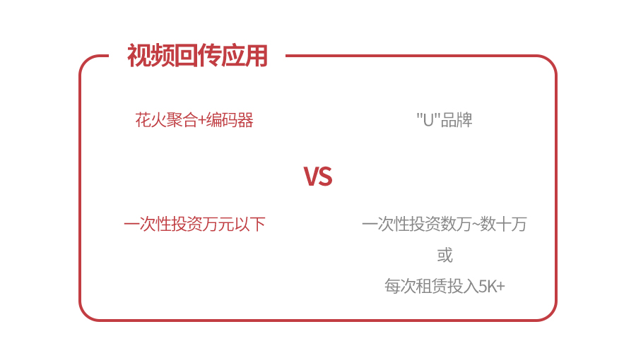 在视频回传应用领域,海外厂商TVU/LiveU绝对强势,在经营广电市场多年树立的价格和资费的壁垒,让一众小型直播团队直呼“压力山大“,数万到十多万的设备价格并不那么亲民,而使用花火配合前后端的编解码设备一次投入只是两”U“家产品的零头或者一两次租赁使用的费用。